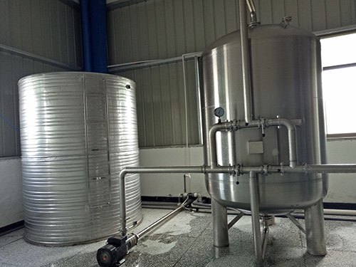 原水箱主要用于儲存原水,用于沉淀水中的大泥沙顆粒及其它可沉淀物質(zhì)。同時緩沖原水管中水壓不穩(wěn)定對水處理系統(tǒng)造成的沖擊。(如水壓過低或過高引起的壓力傳感的反應(yīng))。